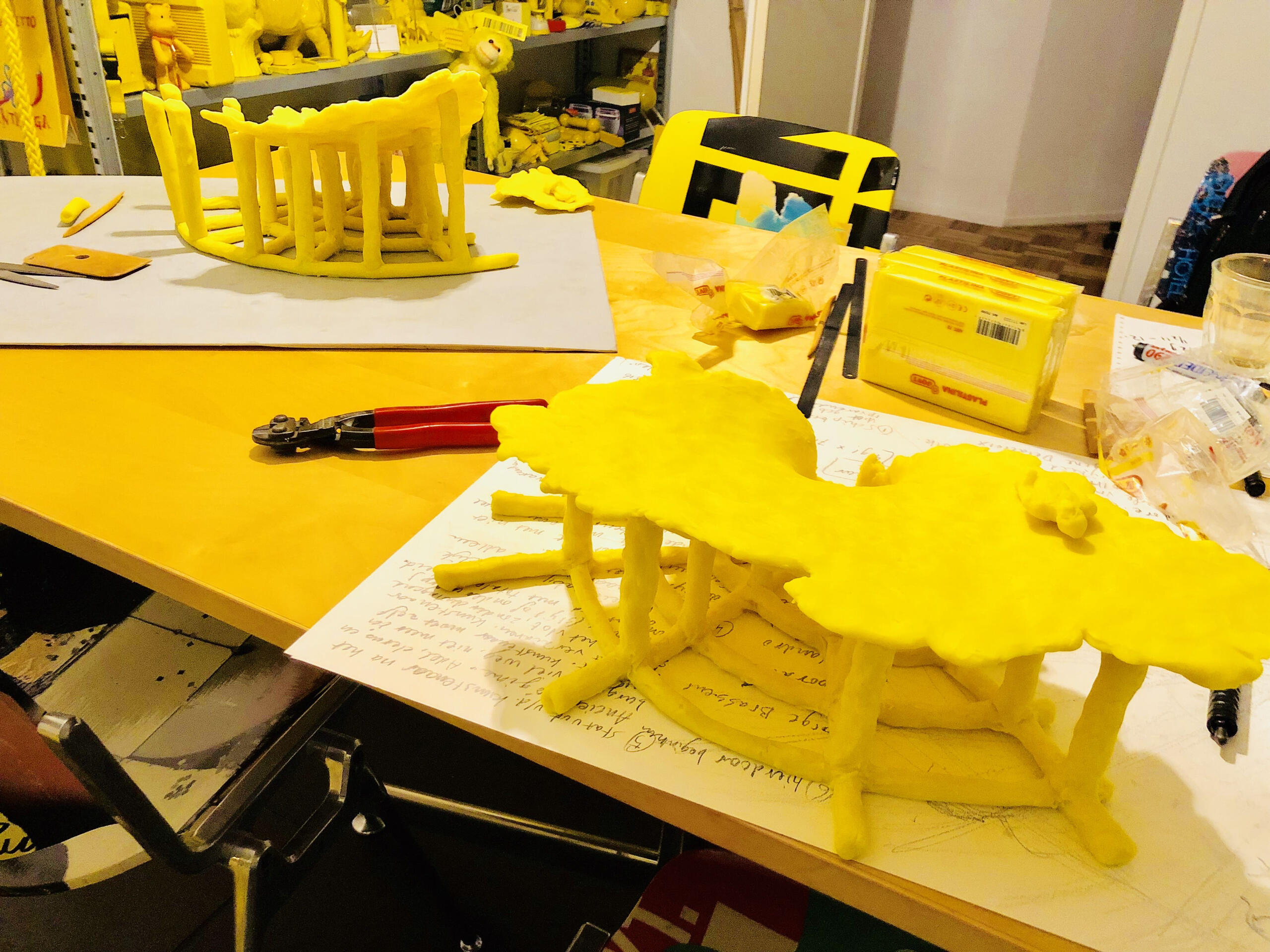 Op enig moment ontstond het idee geeL Leeg zo groot te groeien dat ze als spiegel van het kapitalisme kan dienen. Een gele wereld die er alles aan doet om geabsorbeerd te worden, om via deze absorptie nog groter en leger te worden. We starten alle geel dat we tegenkwamen op te vorderen, om dit vervolgens in stelling te brengen tegen de dominante ideologie.
