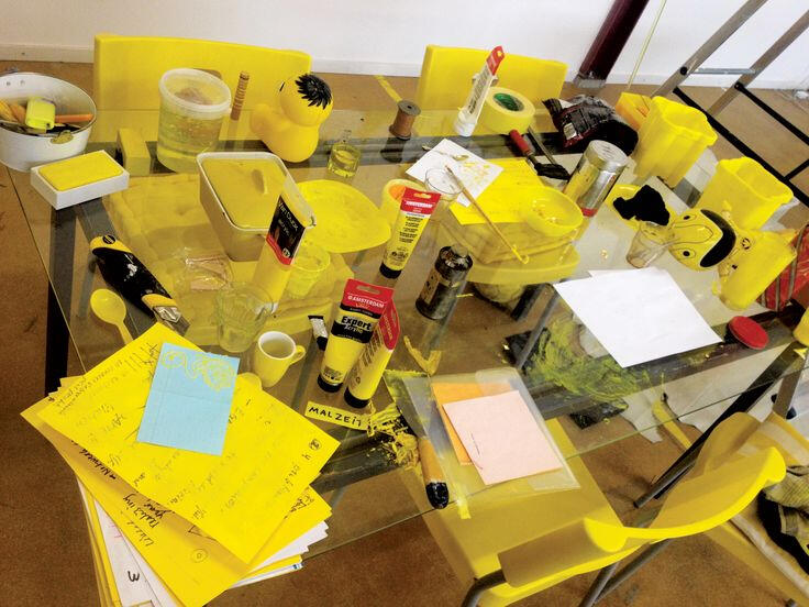 geeL Leeg is megalomaan, strekt zich over de wereld uit, maar is voor ons kunstenaars ook persoonlijk, in de zin dat het werk en wat het met zich meebrengt, in het dagelijkse leven ingrijpt en daaraan bijdraagt. In de vele momenten dat de kleur geel zich onaangekondigd, en op de meest uitzonderlijke plekken aan ons opdringt komt de hele constructie onder de werkelijkheid bloot te liggen. Ze openbaart iets dat tegelijkertijd totaal als een leegte is.